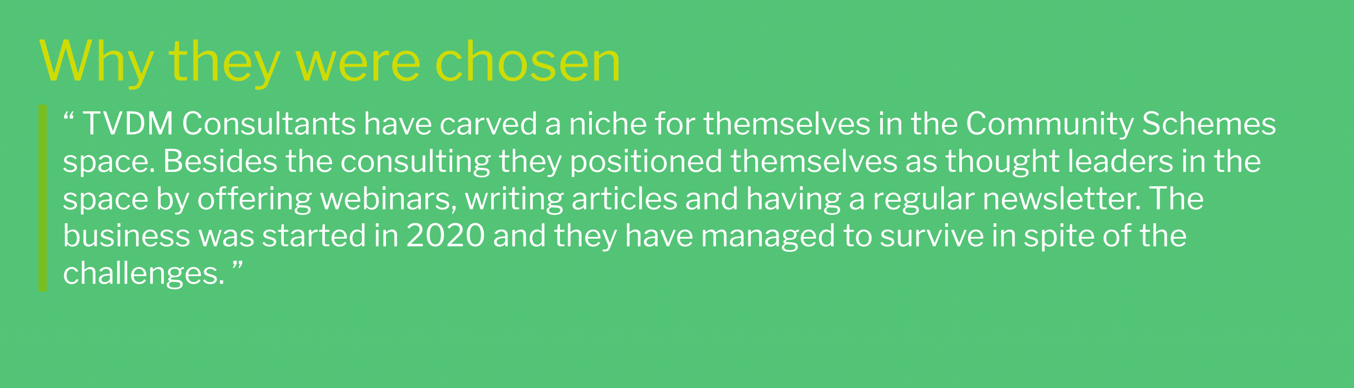 We are a specialist community scheme consultancy, that assists any owner, occupier, trustee, director, managing agent, attorney etc. in the community schemes industry with legal advice, support, training etc.