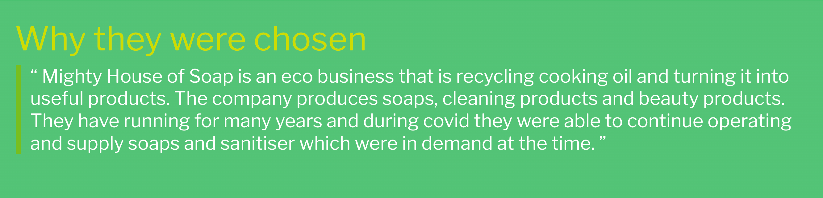 We recycle used cooking oil from local food establishments around the township, we then filter and purify it and produce our multipurpose bar soap. Due to the production of this multipurpose bar soap we have also added the production of Glycerine soaps and other biological cleaning products. We also produce a beauty range as well.